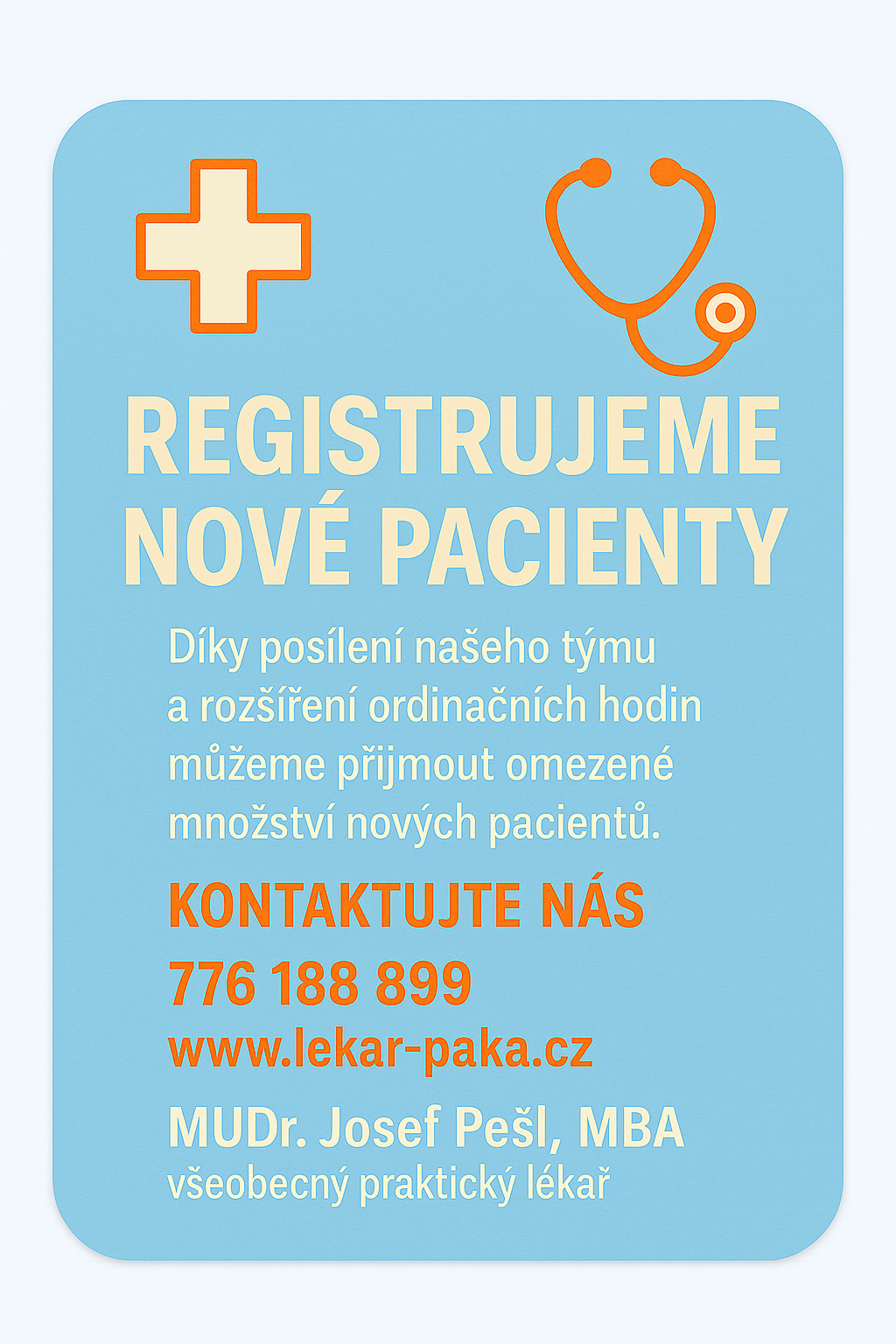 Máme k dispozici vakcíny proti nové variantě viru LP.8.1. S ohledem na rychle se zvyšující výskyt tohoto onemocnění, doporučujeme očkování lidem nad 65let věku a chronicky nemocným. V případě zájmu o očkování či konzultaci očkování se prosím objednejte.